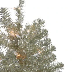 Northlight 3′ Metallic Platinum Artificial Tinsel Christmas Tree – Clear Lights