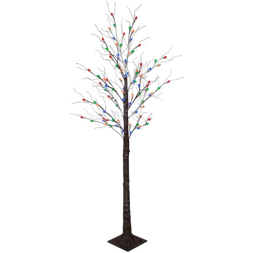 Northlight 6′ Brown LED Lighted Frosted Christmas Twig Tree – Multi-Color Lights