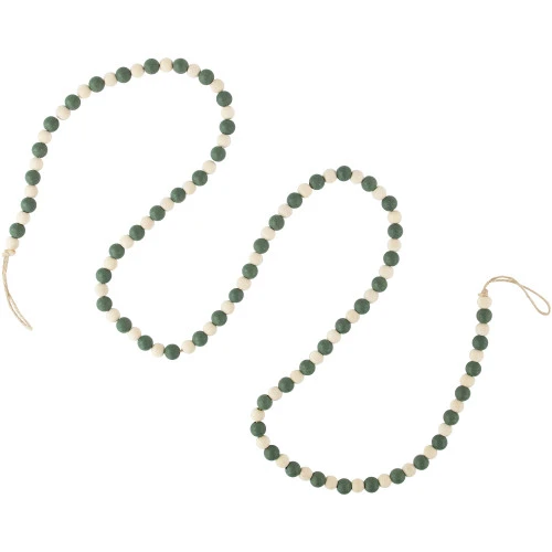 Features round green and ivory beads
