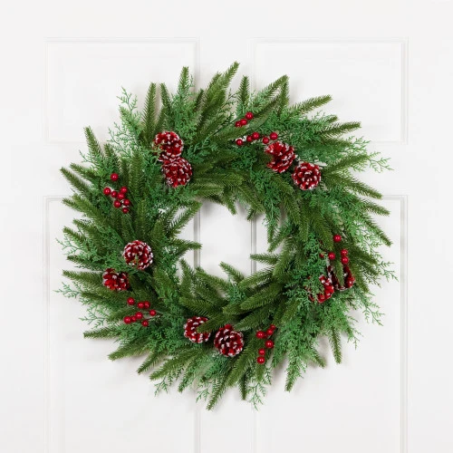 Dimensions: 24” diameter (measured from outermost tip to outermost tip across the wreath)