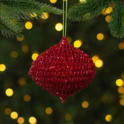 Northlight 4″ Red Glitter Spiral Coiled Wire Onion Finial Christmas Ornament