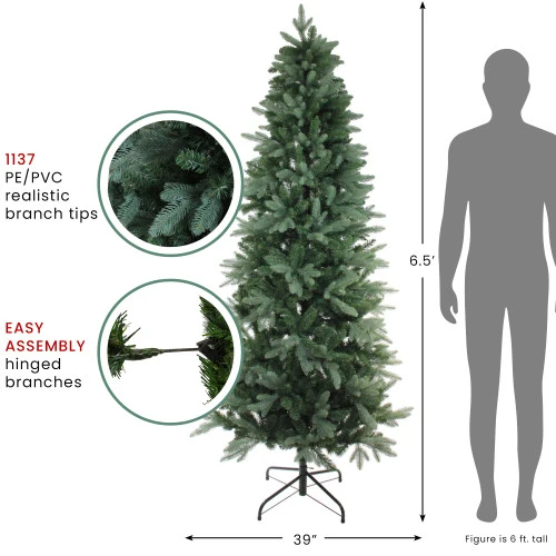 Dimensions: 6.5′ high (from the base of the stand to the top of the tree)
