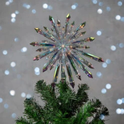 Lighted Iridescent Icicle Christmas Tree Topper – 14″ – Clear Lights