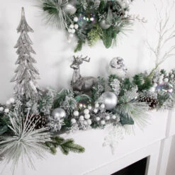 Northlight 5′ Green And Silver Iced Cedar Christmas Garland With Ornaments Bells – Unlit