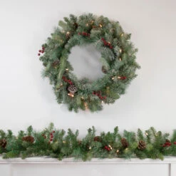 Northlight 27′ X 20″ Pre-Lit Green Artificial Pine Christmas Garland, Warm White LED Lights